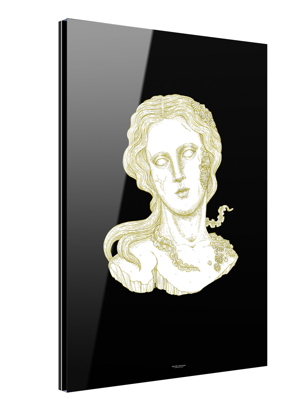Printing as a laboratory-quality digital photo print provides the best resolution for the originally hand-painted artworks. This photo print is precisely laminated to the acrylic glass and sealed with an aluminium base. The luminosity and color depth of your subject remain permanently secured.