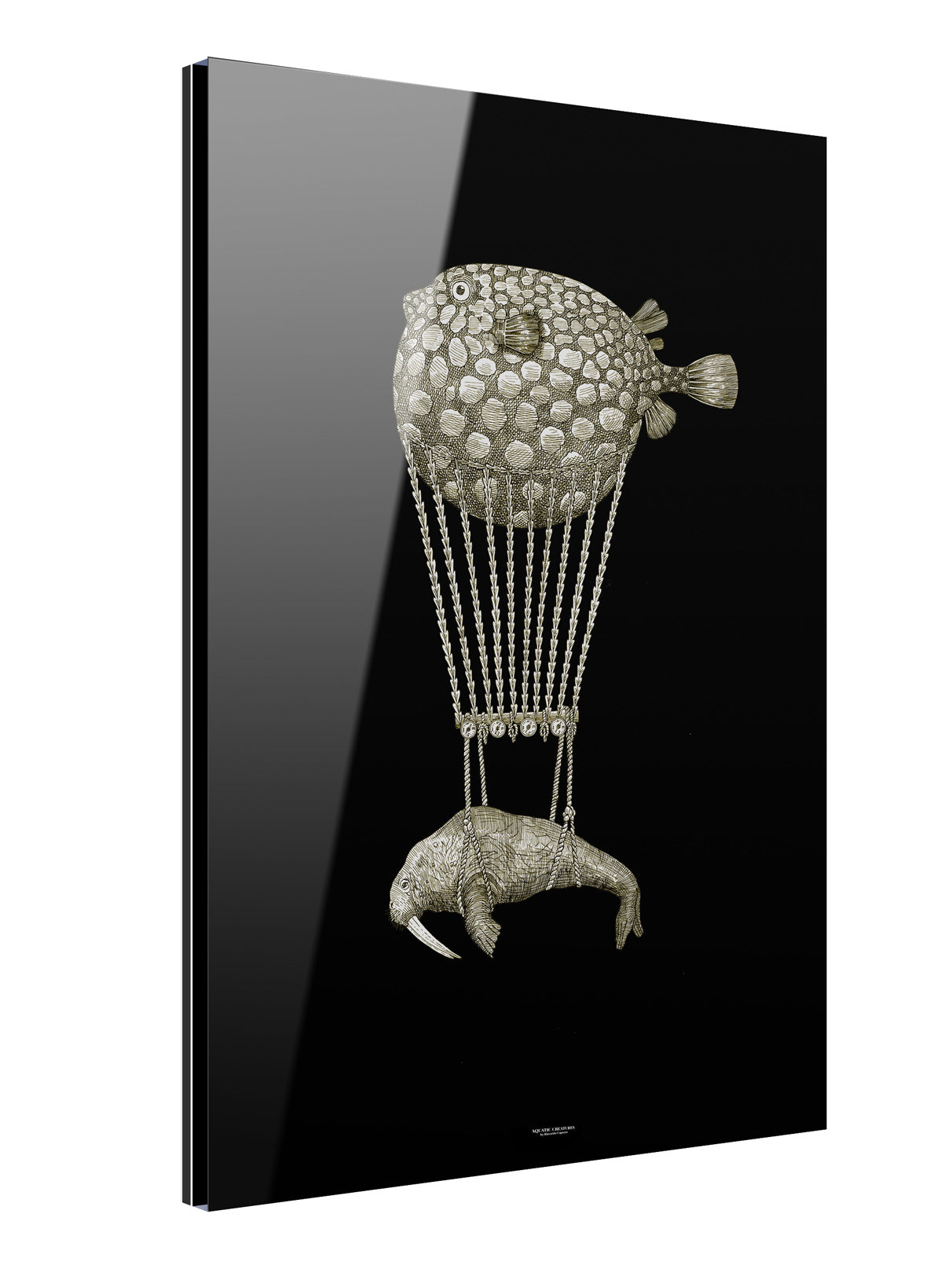 The deep black surface of high-quality acrylic glass obtained from a single cast makes ensure that the intricately illustrated Montgolfier Sailing Fish reaches a flawless facade.