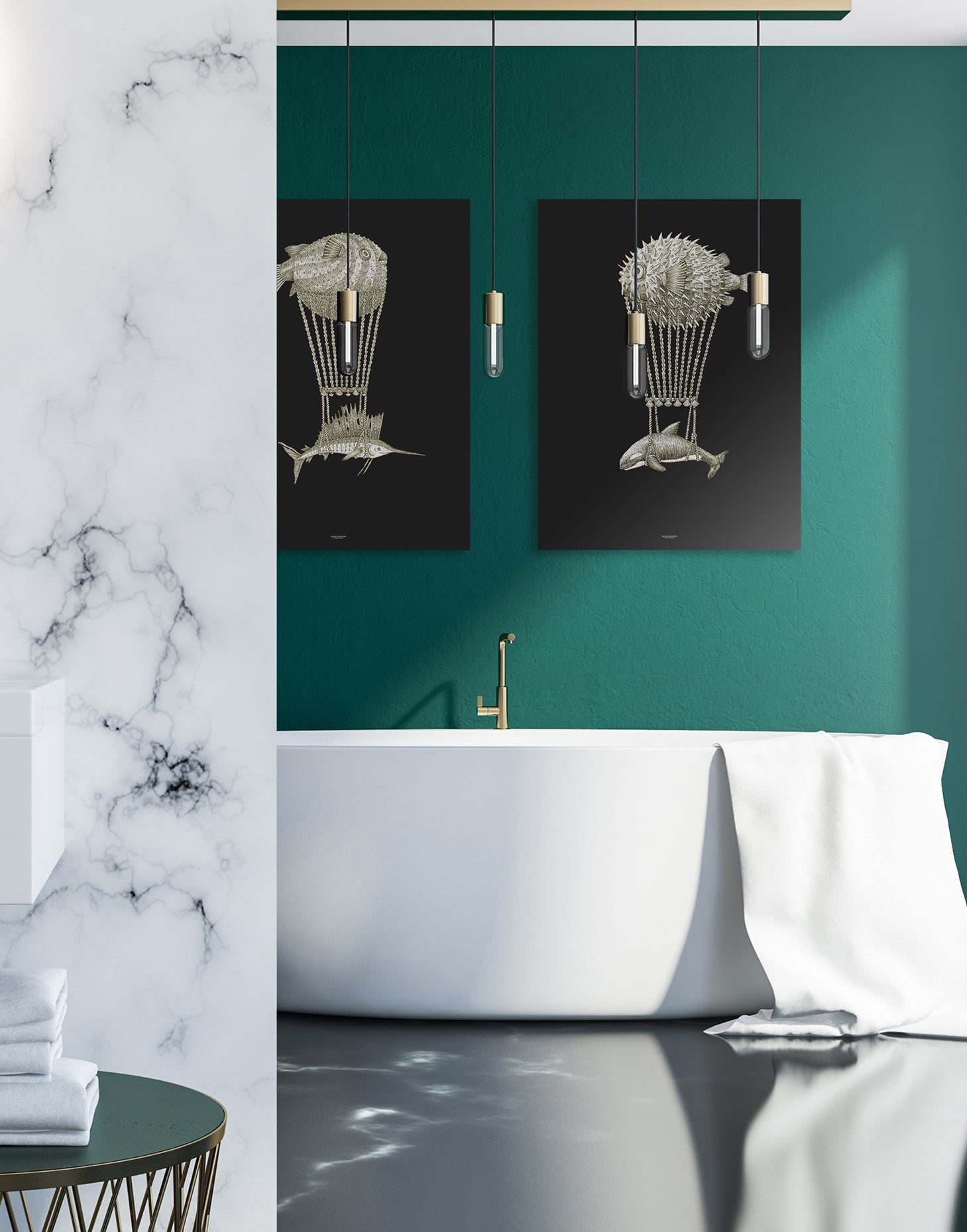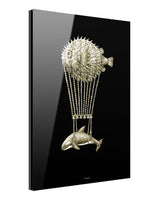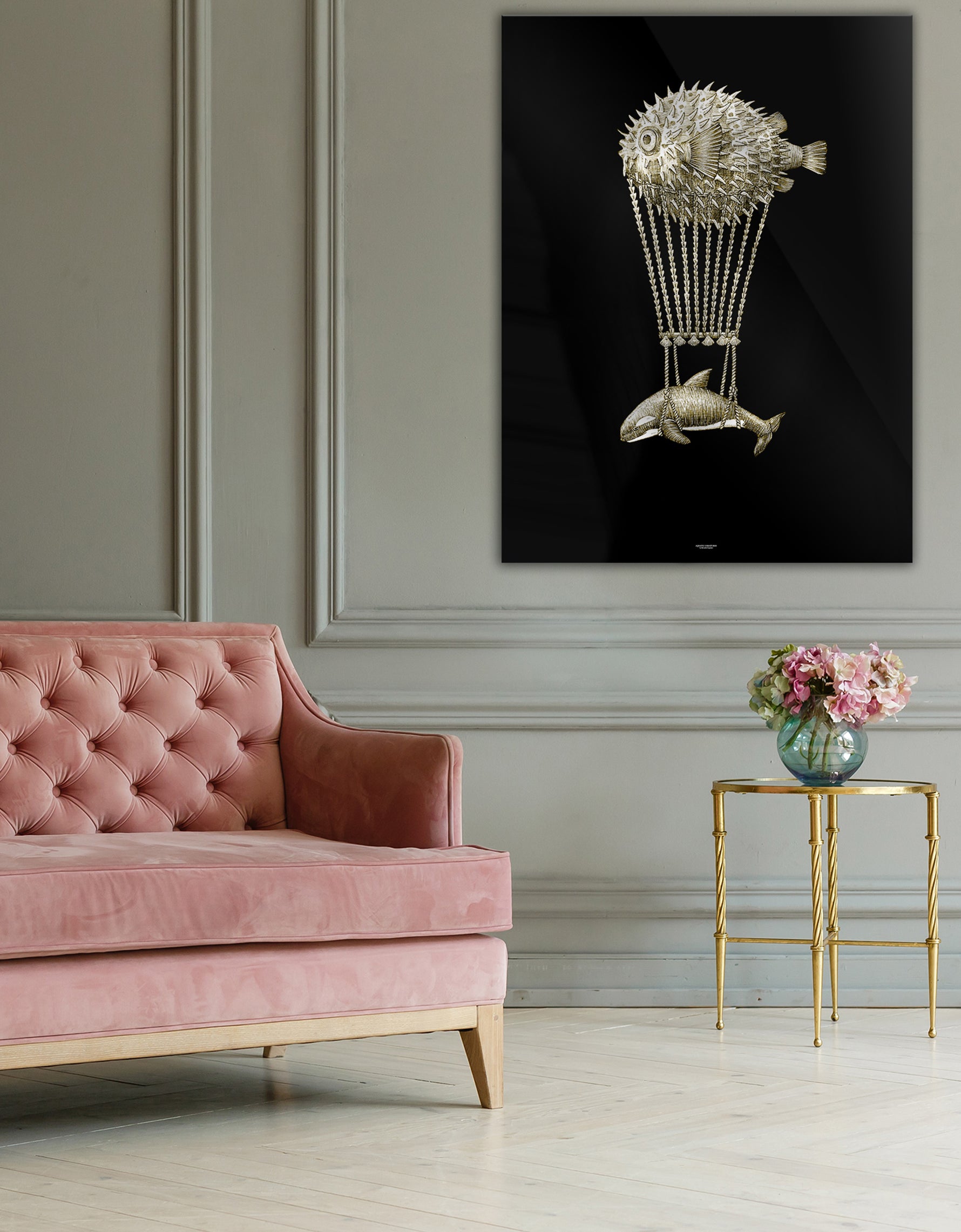 Printing as a laboratory-quality digital photo print provides the best resolution for the originally hand-painted artworks. This photo print is precisely laminated to the acrylic glass and sealed with an aluminium base. Luminosity and color depth of your subject remain permanently secured.